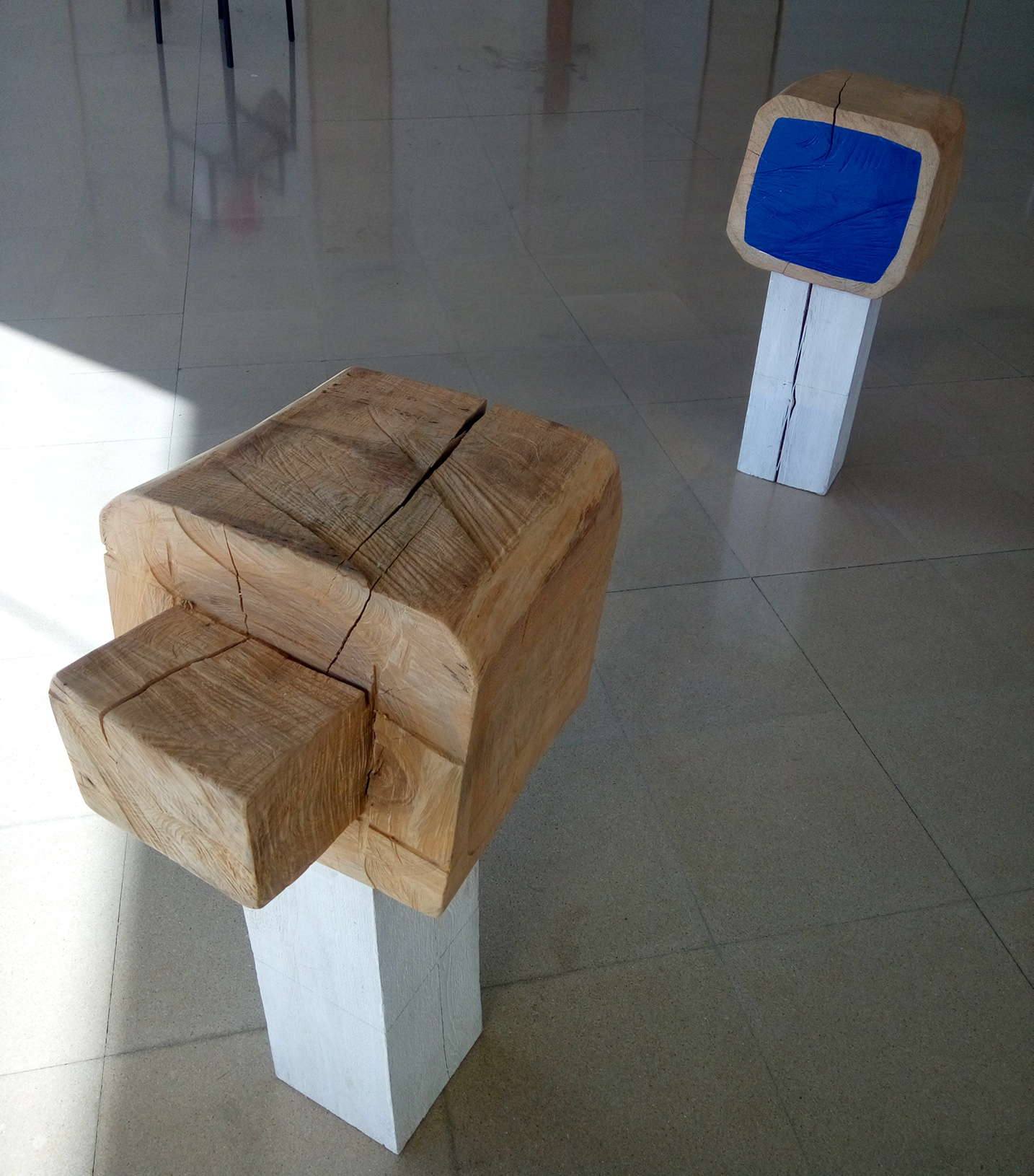 Madera de tilo tallada y pintada, 2 piezas de 33 x 32 x 40 cms, 2007.