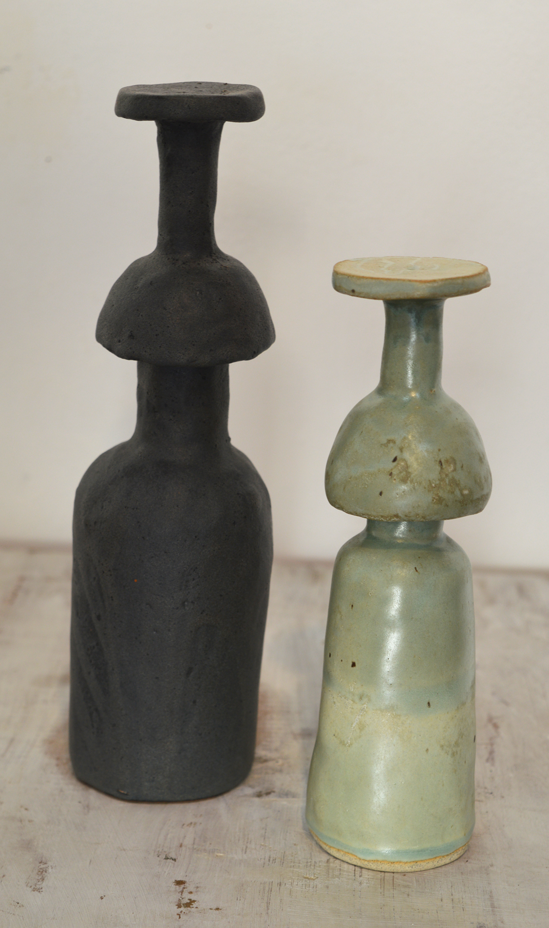 2021, painted iron and glazed ceramic, 2 pieces 67 x 15 x 15 cms and 12 kilos each